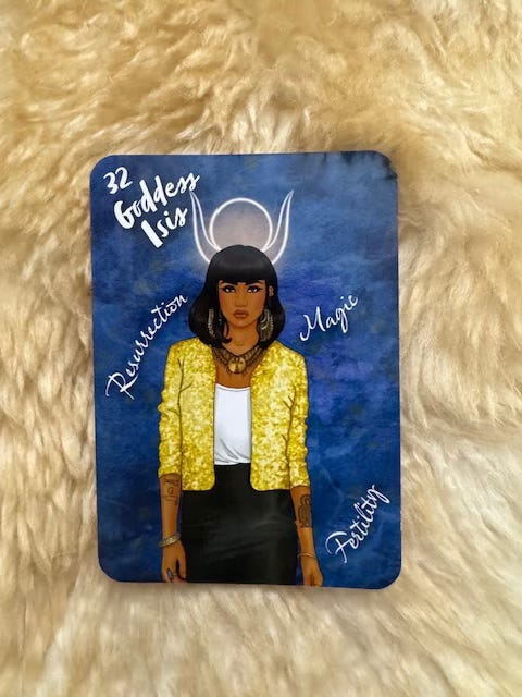 This week’s card, the goddess Isis, is a beautiful reflection of the collective energy right now. Yes, there’s a lot going on energetically, things feel heightened, fast, and full of potential, but beneath it all, there’s a quiet, fertile kind of magic rising.
