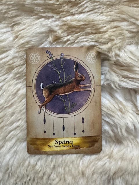 This week’s card feels perfect for the collective energy, especially as here in the Northern Hemisphere we’ve just crossed the threshold into spring. As the saying goes, spring has sprung.